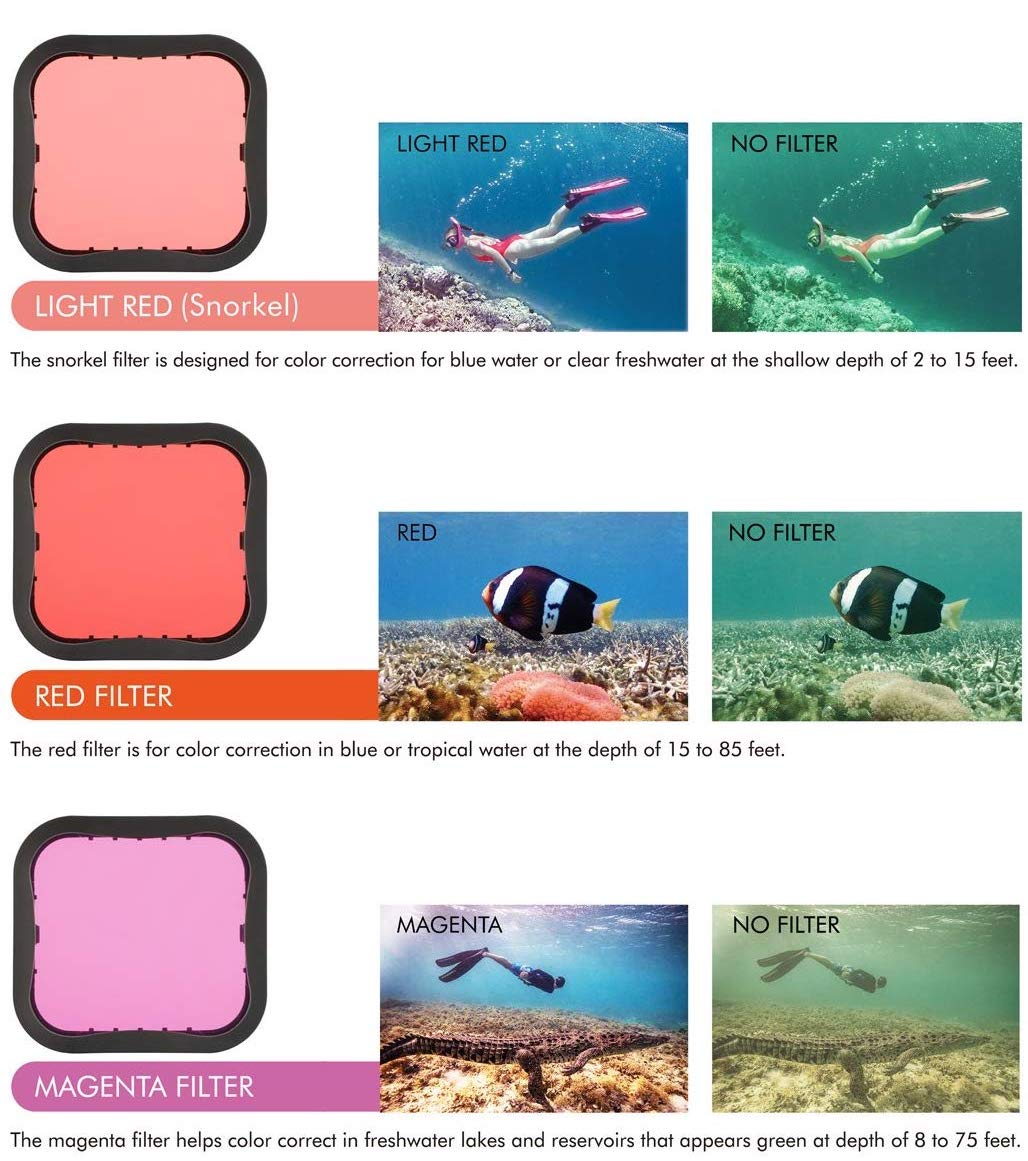 - Provide Outstanding Improvement of Underwater Footage: This 3-in-1 diving filter set...